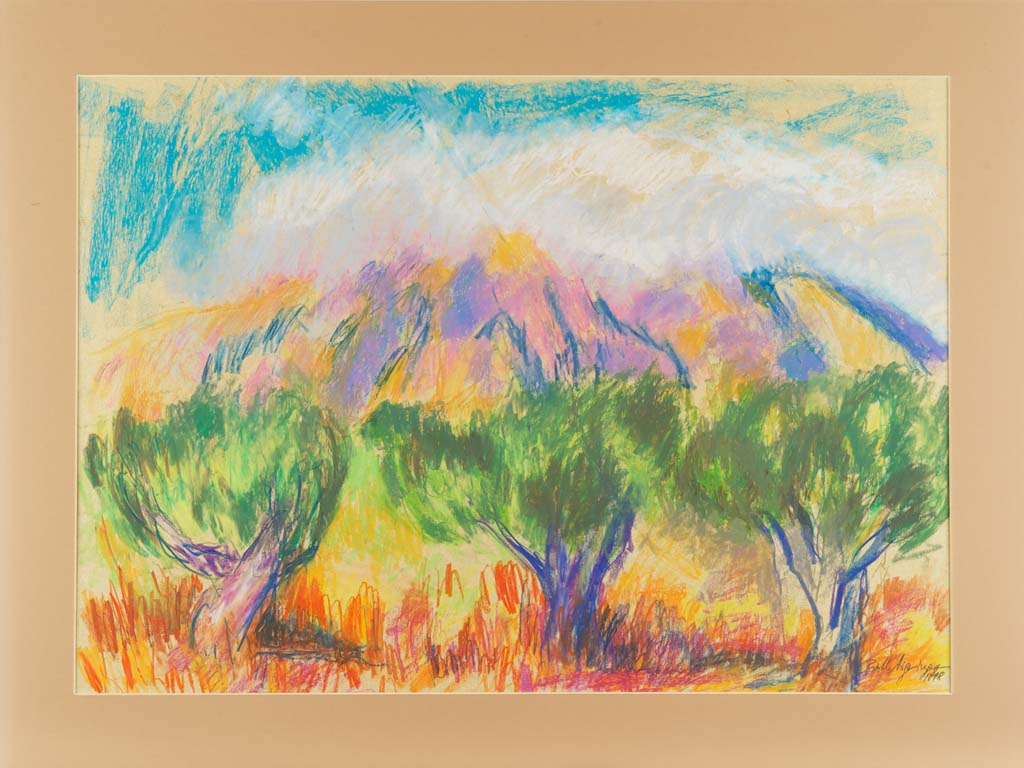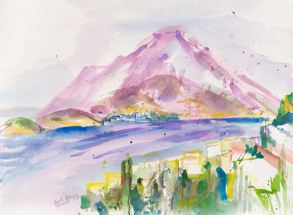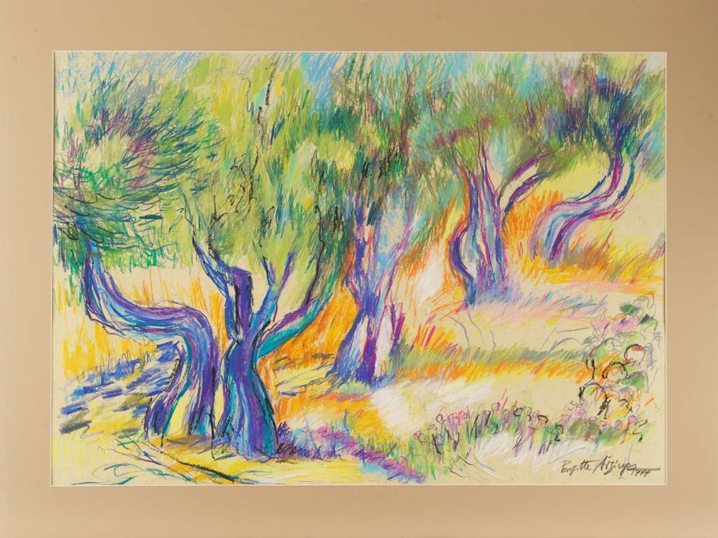 Meine Landschaftsbilder, die im Süden Europas spielen, sind durch warme Farben wie rosa, lichtblau, gelb oder orange gekennzeichnet. Mit diesen Farbnuancen lassen sich das viele Licht und der Schatten des mediterranen Raums wiedergeben. In meinen österreichischen Landschaften dominiert die Farbe Grün. Die prächtigen Landschaften, die vor allem in den warmen Jahreszeiten in Österreich dominieren, haben etwas Melancholisches an sich, das sich mit verschiedenen Grüntönen umsetzen lässt.